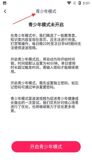 3、點青少年模式頁面,標題顯示未開啟,介紹模式優勢、限制及時間鎖設置,底部有開啟青少年模式按鈕。