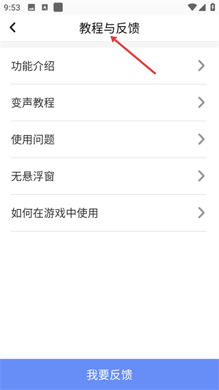 2、教程與反饋模塊包含功能介紹變聲教程等指引內容,同時提供我要反饋入口,幫助用戶解決問題并提交建議。