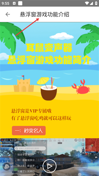 4、懸浮窗游戲功能為VIP專屬,展示其在游戲中的變聲效果,輔助用戶了解該功能的使用場景與實際效果。