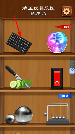 1、選擇貨架上的解壓玩具如鍵盤,進入對應玩具的互動界面,開啟解壓操作流程。