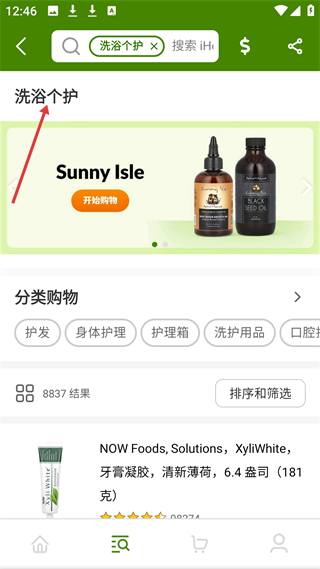 3、洗浴個護分類頁,有護發、身體護理等細分分類,展示相關產品,滿足洗浴個護采購需求。