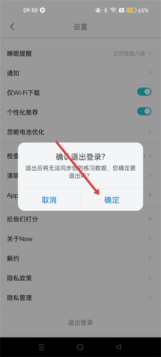 4、退出登錄界面,會彈出確認退出登錄的提示框,提示退出后無法同步練習數據,可選擇取消或確定,確定后即可退出當前賬號登錄。