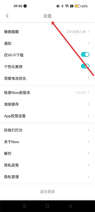 3、進入設置界面,可設置睡眠提醒、通知等功能個性化推薦的開關操作,能檢查新版本、清除緩存、管理App權限等,底部有退出登錄選項。