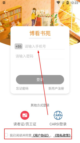 1、進入用戶登錄頁面,勾選同意相關協議,輸入手機號與密碼,點擊登錄按鈕,完成賬號登錄。