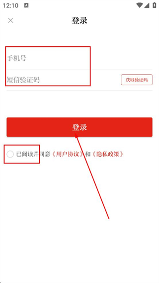 1、進入登錄頁面,在手機號欄填寫本人號碼,點擊獲取驗證碼,輸入收到的短信驗證碼,勾選已閱讀并同意相關協議,點擊登錄按鈕完成賬號登錄。
