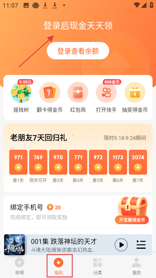 2、福利界面主打登錄領現金,含搖錢樹等玩法。限時推出老朋友回歸禮,綁定手機號有獎勵帶來多樣福利活動。
