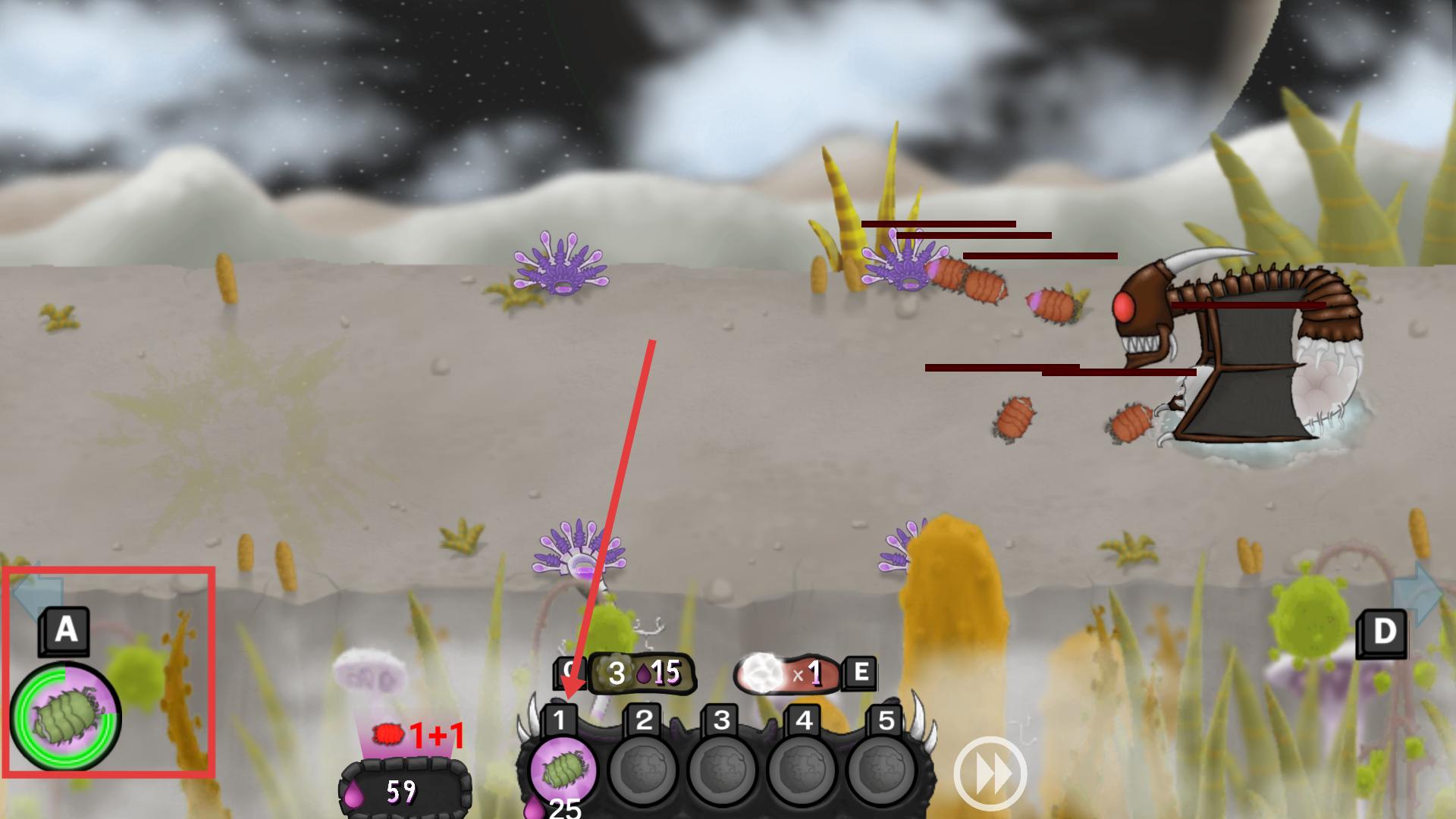 2、在游戲過程中觀察界面上的蟲群相關數值和圖標,根據提示合理調配蟲群資源,讓蟲群按照規劃的路線移動,去執行任務。