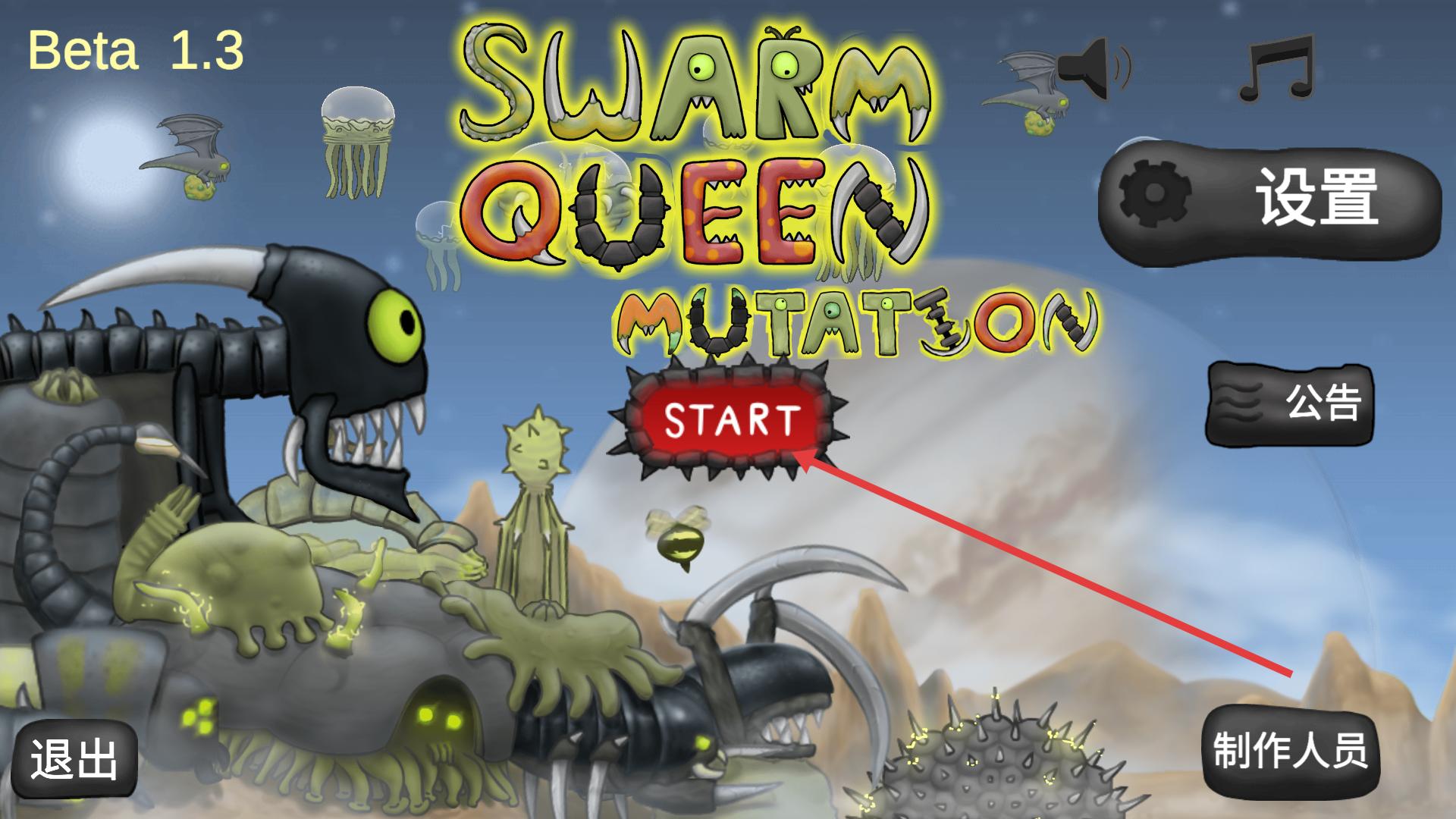 1、進入游戲點擊START按鈕,開啟蟲群女王的變異戰斗冒險,此時能看到游戲的初始場景和相關界面元素,為后續操作做準備。
