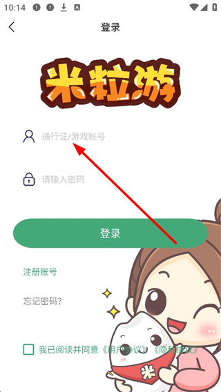 3、登錄界面,輸入通行證、游戲賬號和密碼,勾選同意用戶協議和隱私協議后點擊登錄,也可選擇注冊賬號或找回密碼。