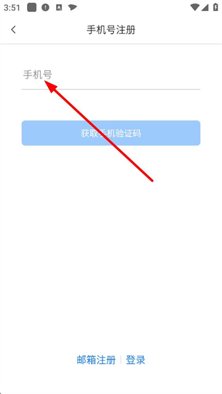 4、進入手機號注冊頁面,找到手機號輸入框,填寫對應號碼后點擊獲取手機驗證碼,準備完成注冊操作。