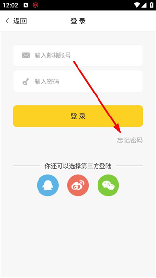 3、選擇蛋蛋登錄后進入郵箱登錄頁,需輸入郵箱賬號與密碼,設有登錄按鈕,還有忘記密碼的功能選項。