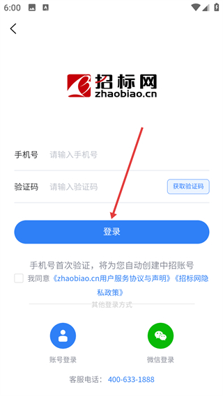 1、登錄界面支持手機號驗證碼登錄,首次驗證自動創賬號,需勾選相關協議,也可通過賬號或微信登錄,是用平臺的必要步驟。