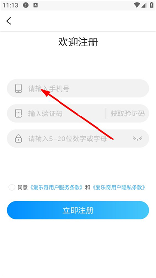 2、點擊立即注冊進入注冊頁面,需依次填寫手機號、獲取并輸入驗證碼,設置數字或字母的密碼,勾選條款后點擊立即注冊完成賬號創建。