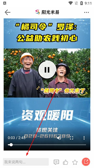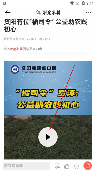 3、在詳情頁找到視頻播放按鈕,點擊該按鈕開始播放橘司令公益助農的相關視頻內容,查看助農故事詳情。