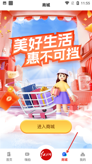 1、商城入口展示 美好生活 惠不可擋的宣傳畫面,用戶可點擊進入商城按鈕進入購物區域。