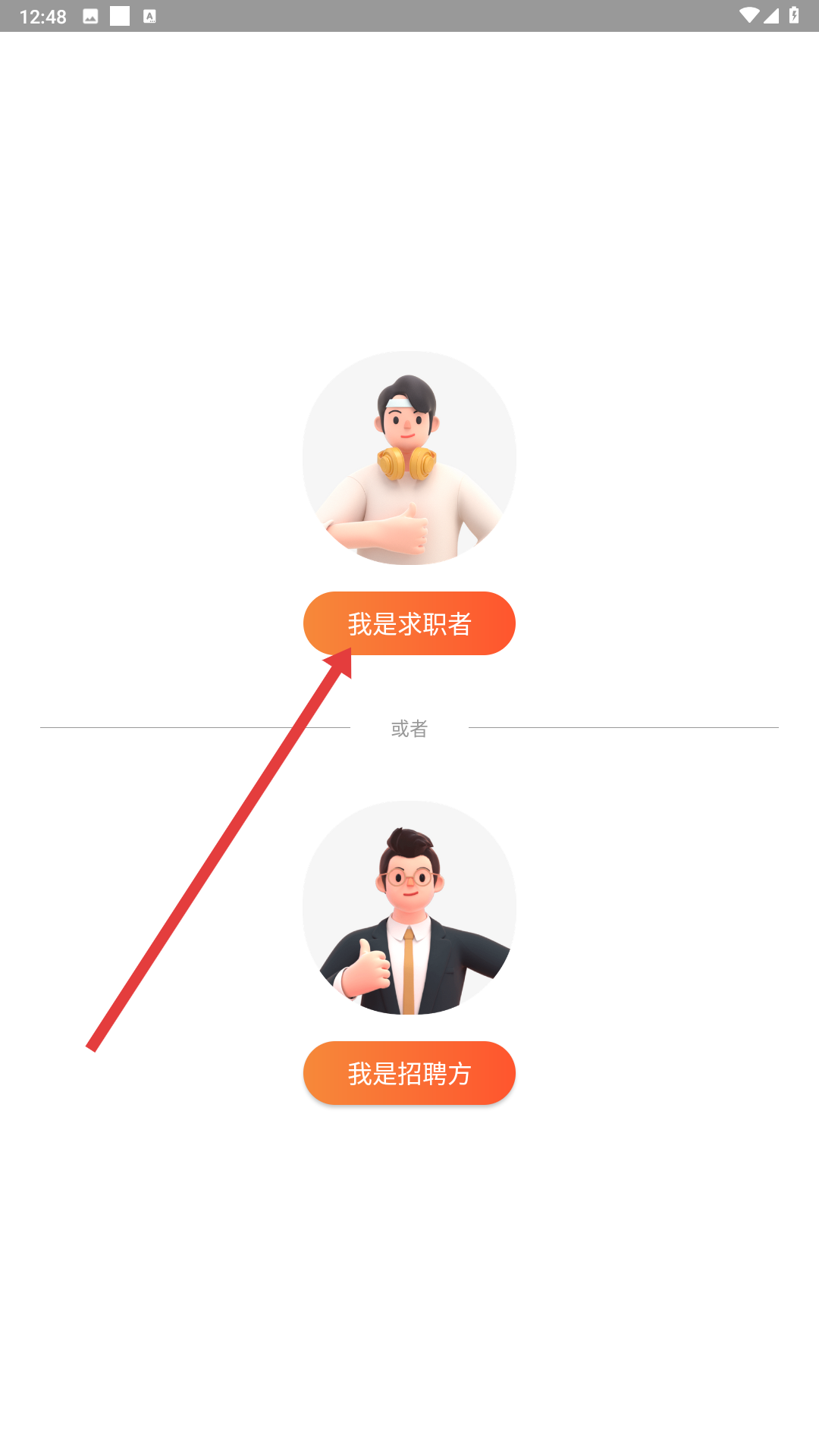 2、來到身份選擇界面,點擊我是求職者選項,進入信息填寫界面。