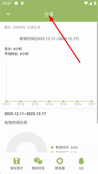 4、分享頁面,能看到指定時段的有效時間統計數據,包含總計、平均時長等信息,可通過保存圖片、微信好友等方式分享該統計內容。