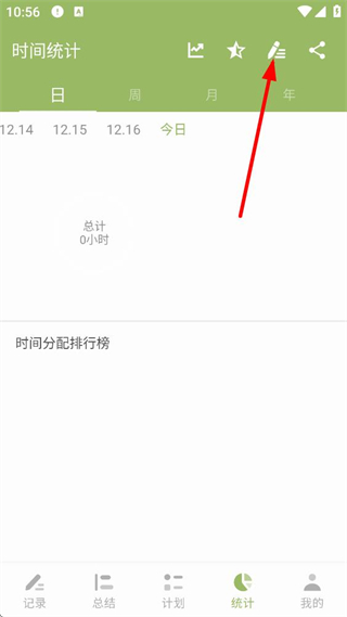 2、時間統計頁面,可按日、周等維度查看統計數據,還有時間分配排行榜,點擊編輯類按鈕,能進入自定義統計頁面調整統計條件。