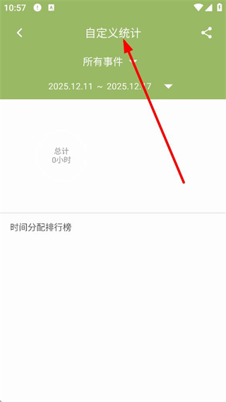 3、進入自定義統計頁面,可選擇統計的事件類型及時間范圍,以此精準查看對應時段、事件的時間消耗情況,輔助時間管理分析。