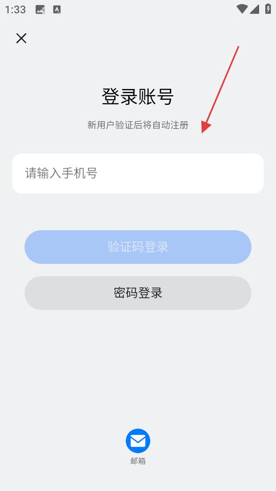 3、登錄賬號頁面,提示新用戶驗證后將自動注冊,需輸入手機號,可選擇驗證碼登錄或密碼登錄,也可通過郵箱登錄。