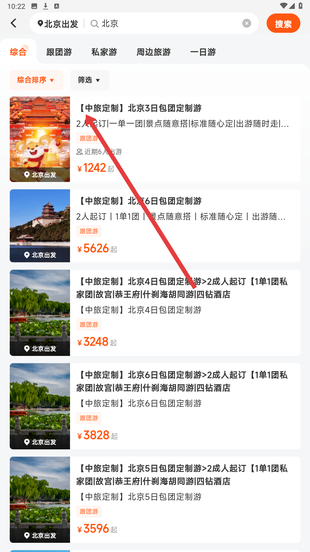 3、選擇北京目的地后,可查看中旅定制的北京多日包團定制游產品,了解行程天數、價格等信息,選擇適合的旅游產品。