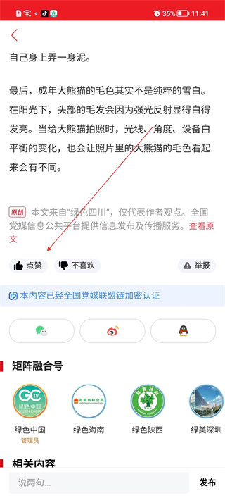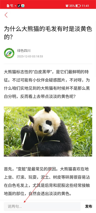 3、在資訊詳情頁閱讀內容,若有想法可點擊底部的說兩句輸入框,填寫內容后點擊發布按鈕,完成對該資訊的互動留言。