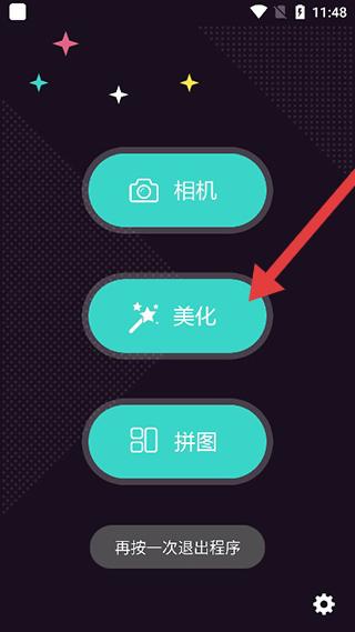 1、美化按鈕尤為突出點擊它,可進入圖片美化環節,搭配相機即拍即改、拼圖創意組合,滿足用戶多樣修圖需求。