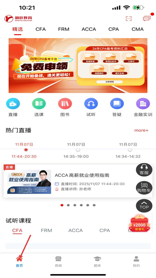 融躍教育app是專注經濟專業學習的軟件,提供CFA、FRM、CPA、ACCA等證書考試學習資源。以,打造財經學習隨身寶典,為目標,精選優質師資,涵蓋公共課精講、專題突破、沖刺串講、考點精練等移動高清課程。每一個課件均精心制作,整合知識要點,以高清網課品質提升學習體驗,確保用戶觀看每一秒都收獲滿滿。