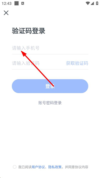 2、在登錄界面,勾選我已閱讀用戶協議、隱私政策,并同意協議內容選項前的圓圈,確保其處于勾選狀態,然后點擊藍色的短信驗證碼登錄按鈕,進行登錄操作。