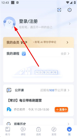 2、進入我的頁面,點擊登錄、注冊可推進賬號流程,登錄后能管理我的課程,參與公開課學習,查看觀看歷史等內容,獲取更完整的學習服務。