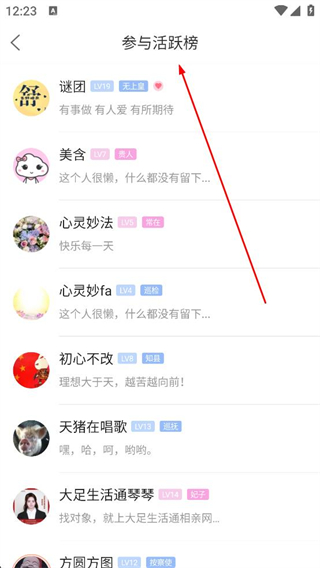 4、點擊話題頁面的參與活躍榜選項,查看該話題下的活躍用戶列表,了解話題的參與情況。