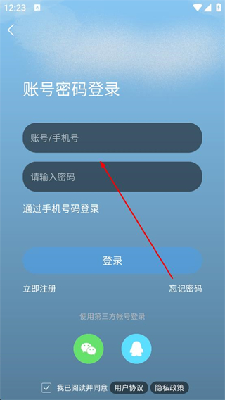 2、在賬號密碼登錄頁面,選擇輸入賬號手機號和密碼,或使用第三方賬號登錄,完成賬號登錄。