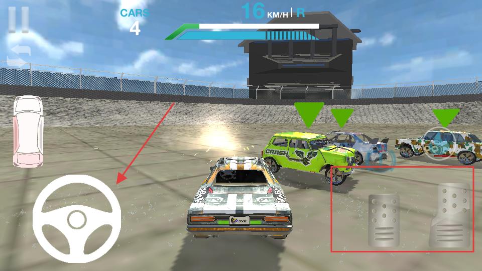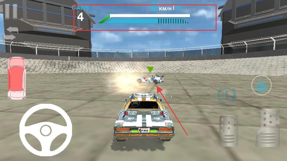 3、進入賽道后使用屏幕上的方向盤和油門、剎車等虛擬按鍵,操控賽車在賽道上移動,尋找其他賽車,準備發起碰撞。