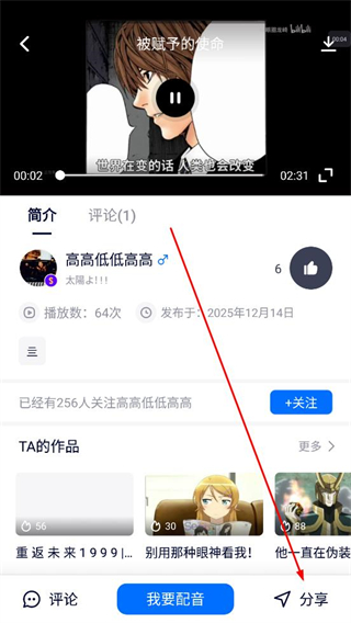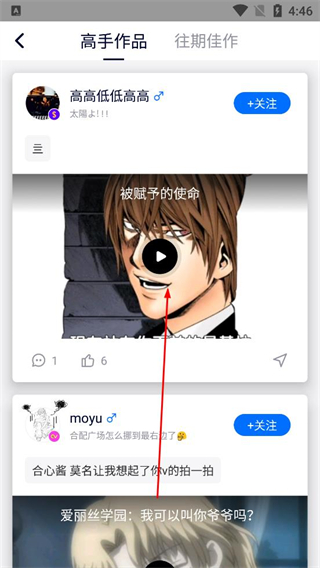 2、在高手作品列表中選擇目標作品,點擊進入該作品的播放頁面,點擊播放按鈕觀看配音內容。