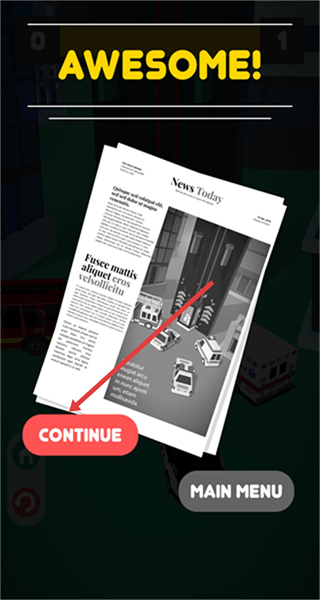 2、若電梯墜落失敗出現此界面,玩家點擊CONTINUE可重新挑戰當前關卡,點擊MAIN MENU則返回主界面。