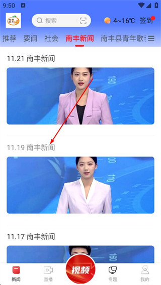 2、登錄后進入新聞頁面,切換至南豐新聞板塊,瀏覽新聞條目,選擇感興趣的南豐新聞進入詳情頁。