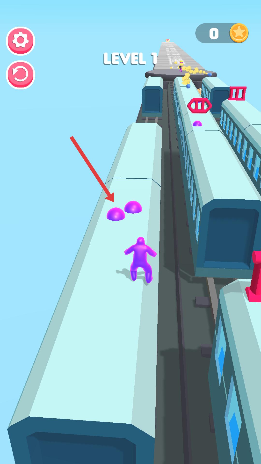 3、繼續移動時,若軌道有變化,可操控角色到列車頂部等區域,這里也有紫色球體,同樣要收集,同時注意保持平衡,避免掉落。