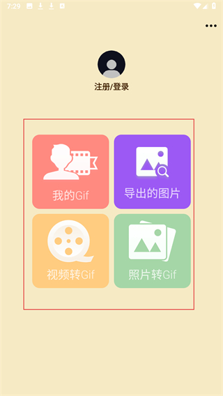 1、可選擇我的Gif導出的圖片、視頻轉Gif、照片轉Gif等功能模塊,根據需求開啟動圖制作流程。