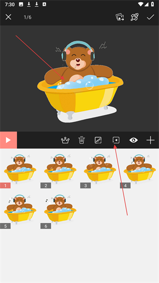 2、在動圖制作過程中可對每幀圖片進行編輯,如調整單幀畫面,還能對幀序列進行管理,選擇不同的幀進行操作。