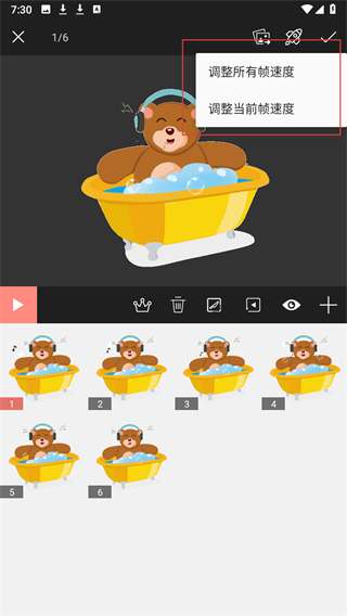 3、支持調整所有幀速度或當前幀速度,通過調節速度來控制動圖的播放節奏,使動圖效果更符合預期。