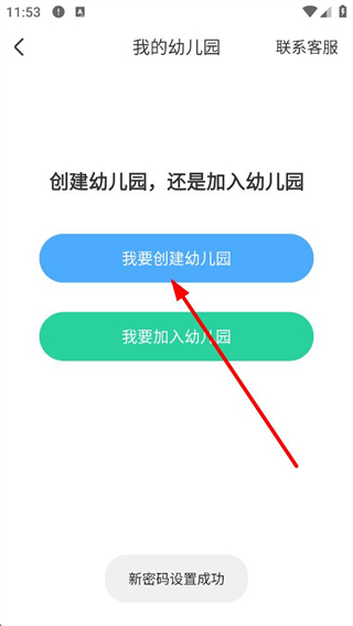4、密碼設置成功后進入我的幼兒園頁面,可選擇我要創建幼兒園或我要加入幼兒園,根據需求選擇對應操作來關聯幼兒園信息。