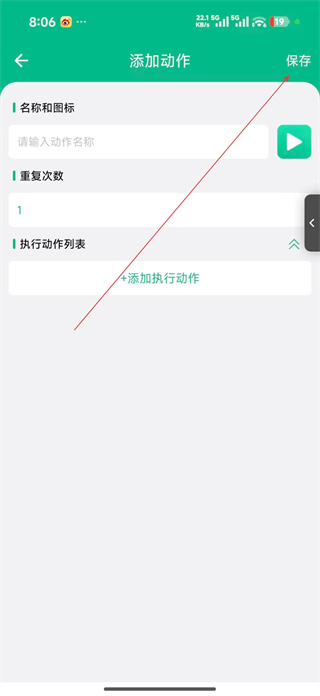 4、在添加動作頁面輸入動作名稱設置重復次數,點擊添加執行動作完善內容,確認信息后點擊保存按鈕,完成新動作的添加。