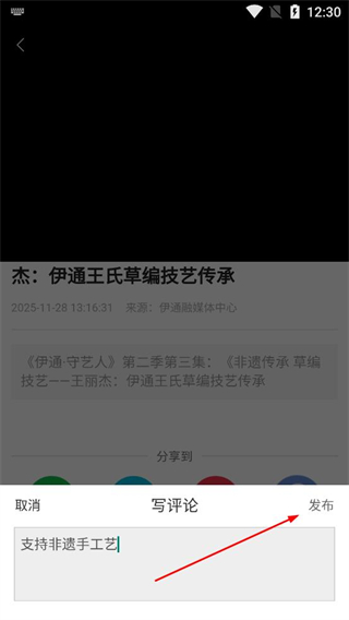 4、點擊輸入框輸入想要發表的評論內容,輸入完成后找到發布按鈕并點擊,可將評論發布出去。