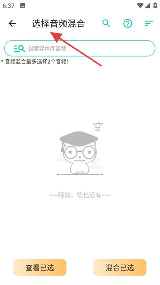 3、音頻混合是操作頁,限制最多選2個音頻,支持搜索選擇,適配疊加創作場景,滿足混音制作需求。