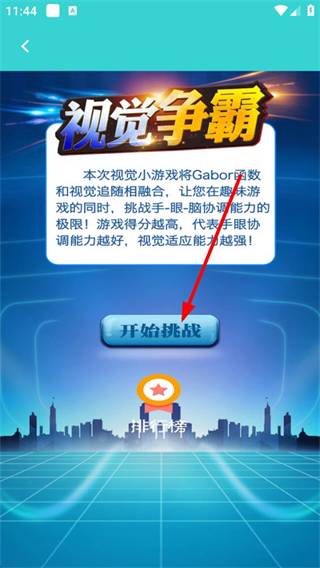 2、點擊視覺爭霸訓練,進入對應界面,能看到游戲介紹,了解其融合Gabor函數與視覺追隨的玩法,點擊開始挑戰即可參與。