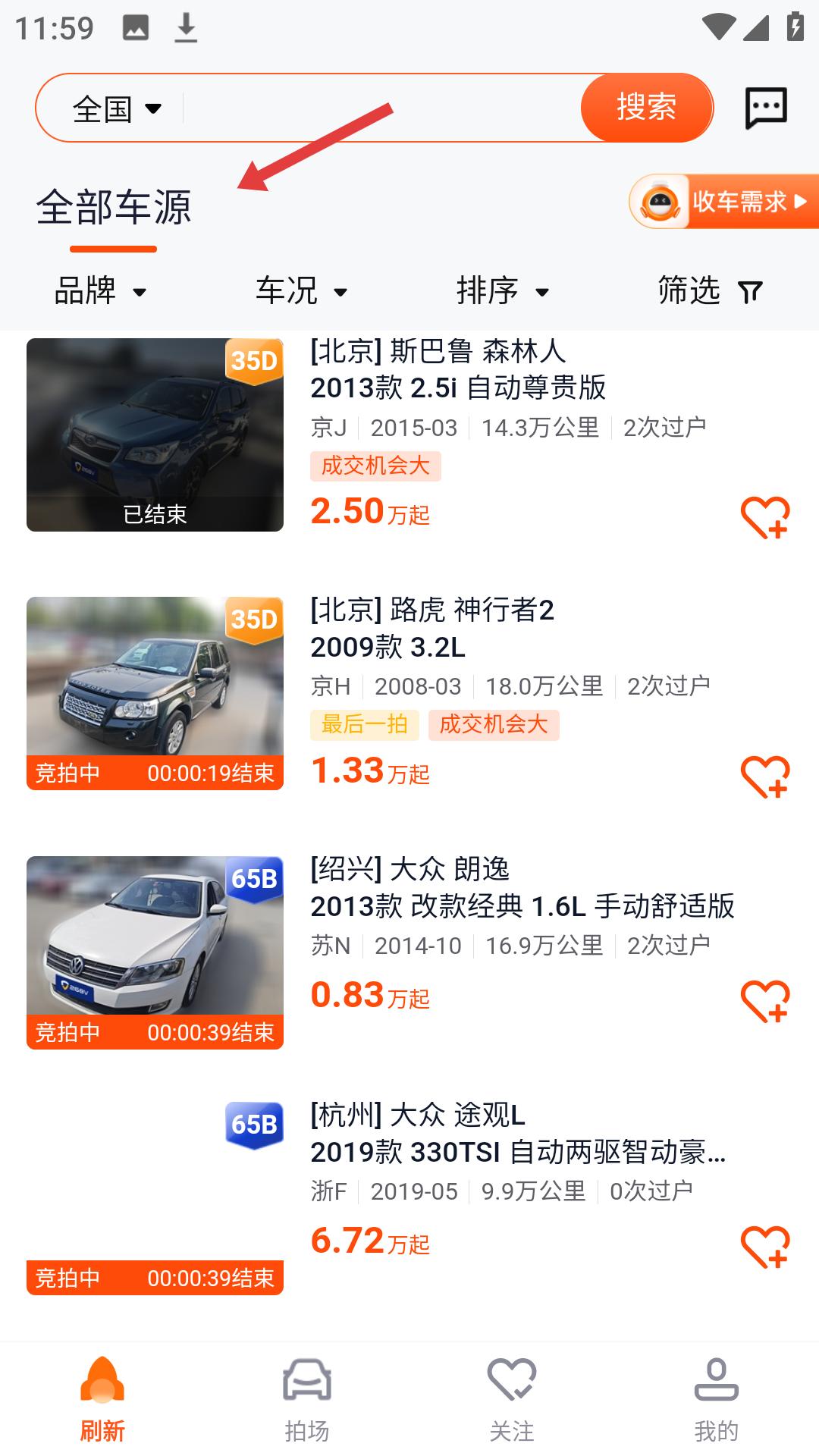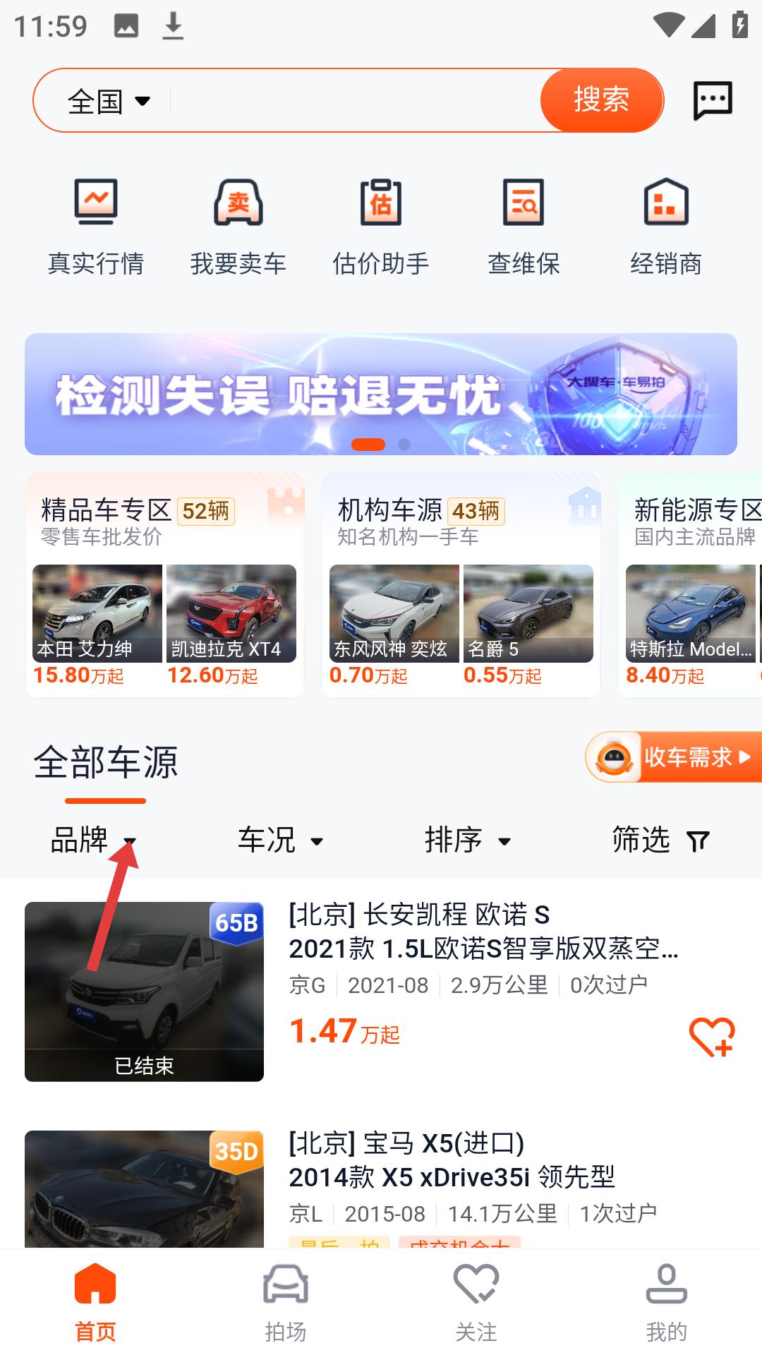 3、完成品牌篩選后,可在全部車源頁面瀏覽該品牌的汽車,查看車輛的價格、車況等信息,挑選合適的車源。