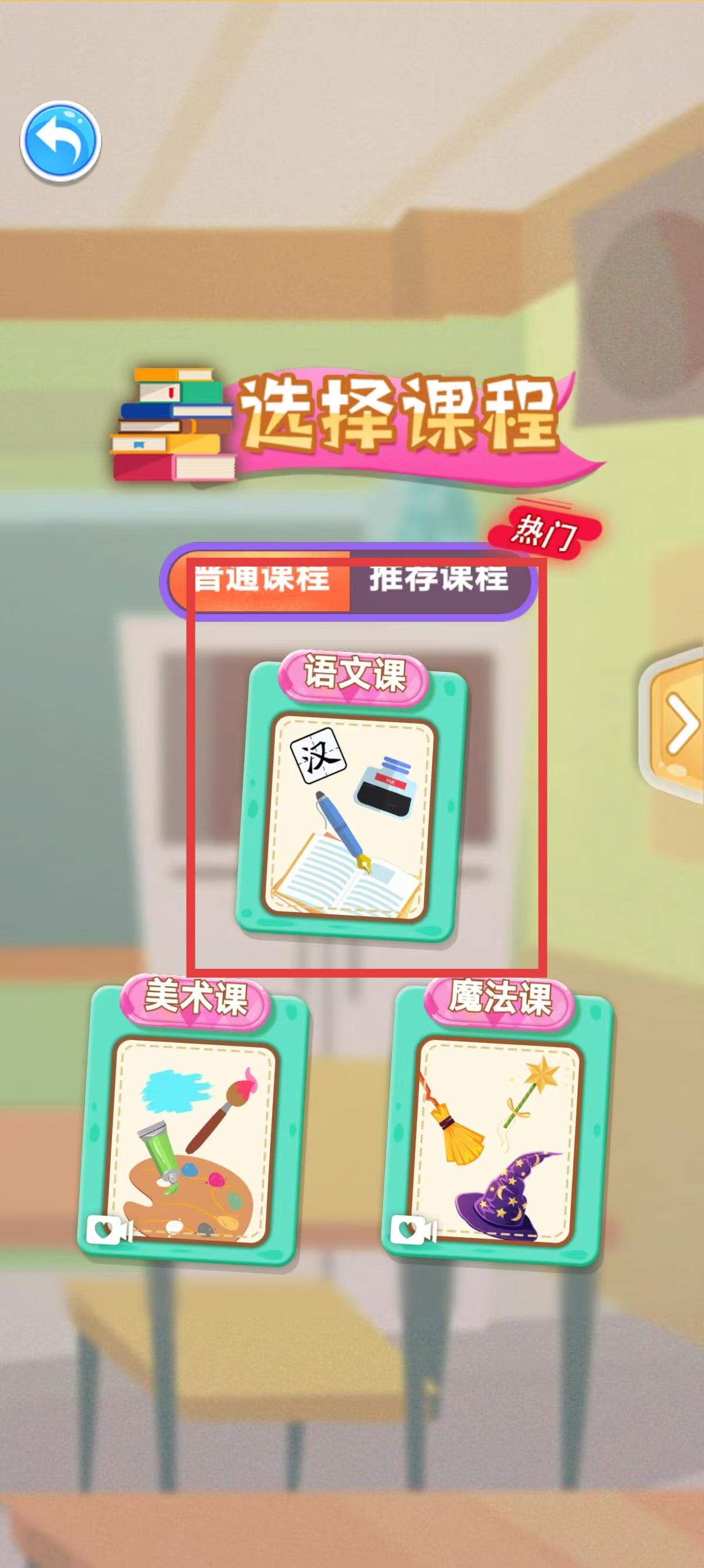 2、選擇課程,有語文課、美術課、魔法課等不同類型,挑選感興趣的課程,進入對應的課堂場景,開展學習互動。