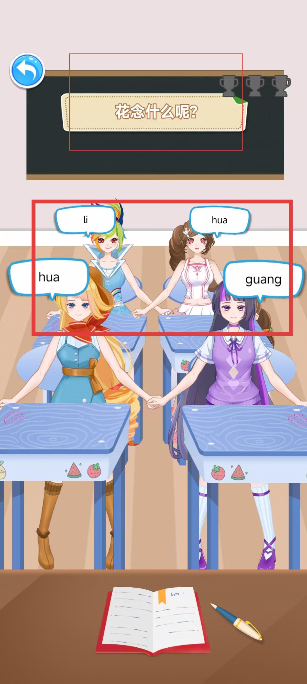 3、在課堂上,會出現如花念什么呢的問題,根據選項選擇正確答案,和其他角色一起參與課堂問答,提升知識掌握度。