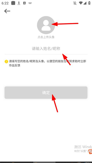 2、需點擊上傳頭像,再在對應輸入框填寫姓名或昵稱,完成這兩項信息填寫后確定按鈕可操作。