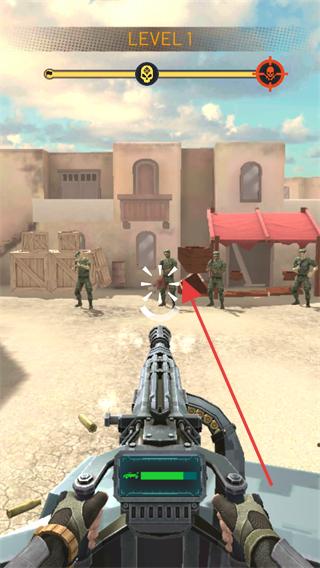 4、不斷消滅敵人當消滅一定數量敵人后,會觸發特殊效果或進入新的場景,繼續瞄準新出現的敵人,完成Level1的射擊對戰,順利闖關。